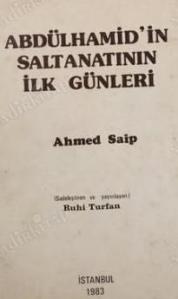 AHMED SAİP; Abdülhamid’in Saltanatının İlk Günleri, (yayına hazırlayan Ruhi Turfan), İstanbul, 1983.