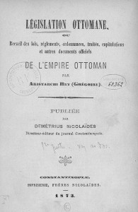 ARİSTARCHİ BEY (GREGOIRE); Législation Ottomane; Constantinople, 1873.