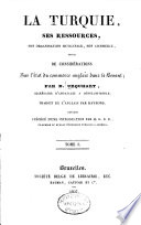 Yazarın “Turkey and its Resources” adlı eserinin Fransızca çevirisi. İlk ciltte Gustave d’Eichtal’ın uzun ve öğretici bir girişi var.